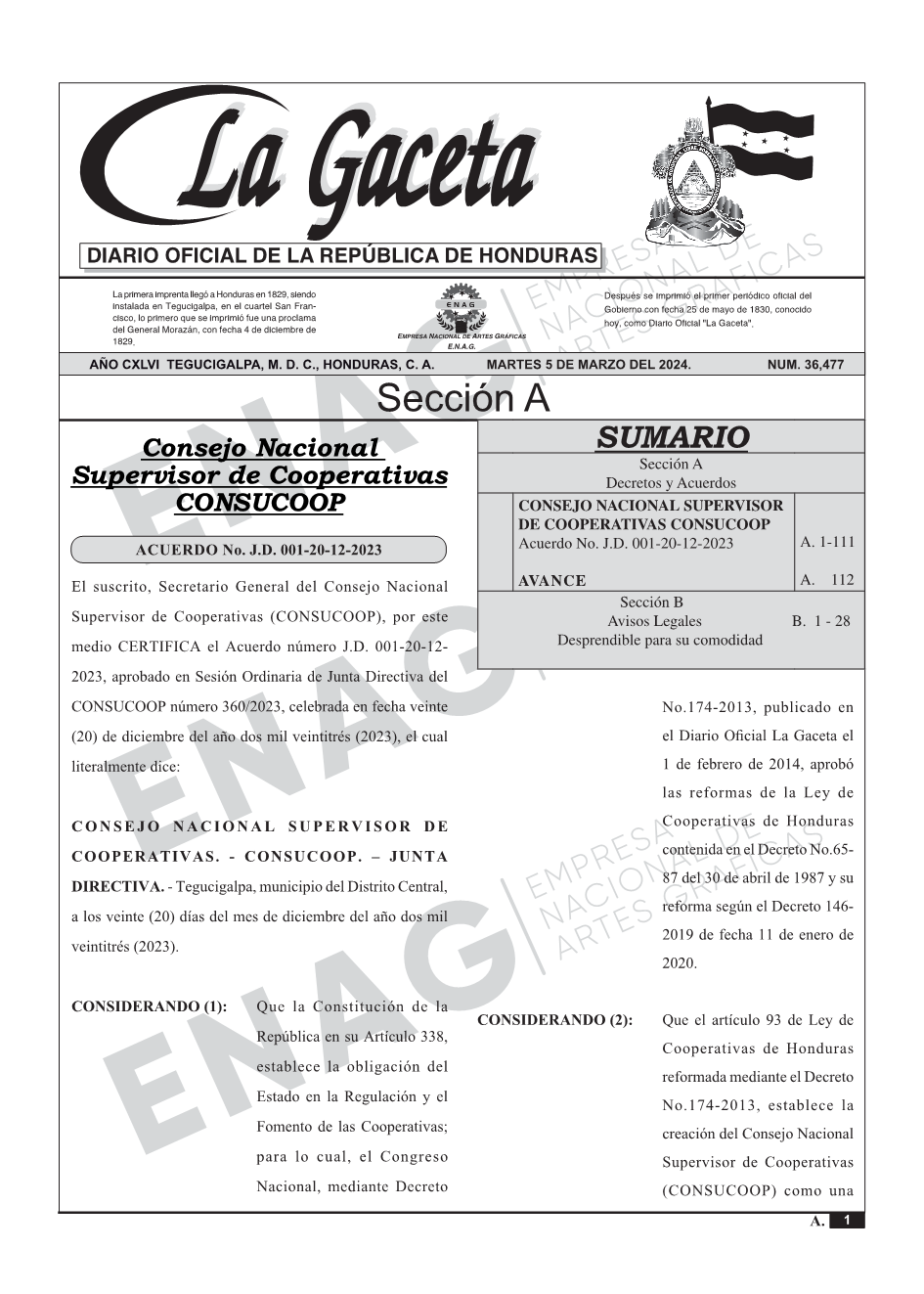 La Gaceta N° 36,477 del 05 de marzo de 2024
