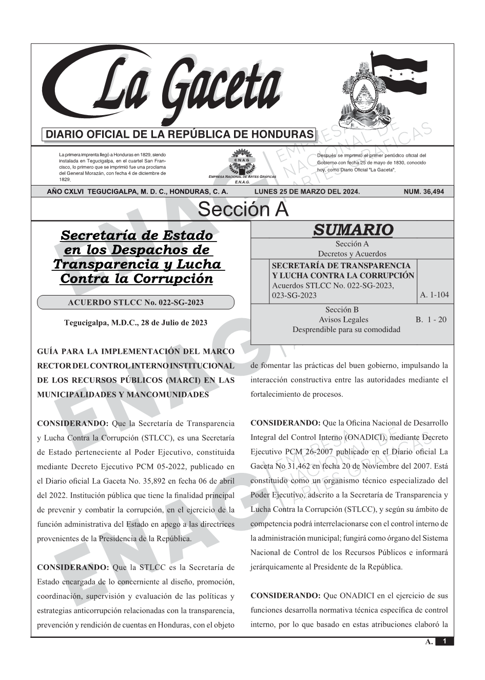 La Gaceta N° 36,494 del 25 de marzo de 2024