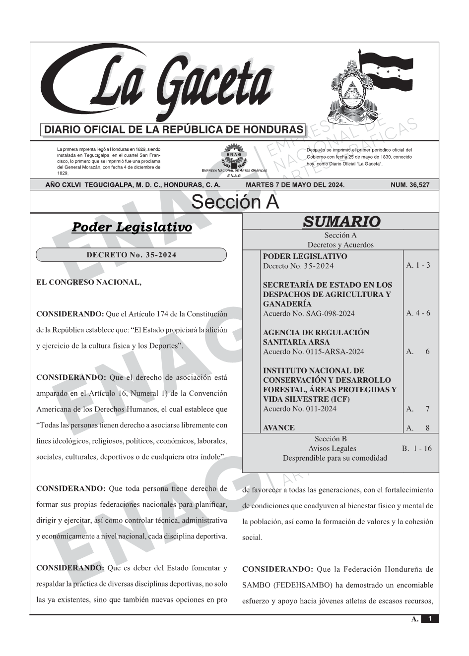 La Gaceta N° 36,527 del 07 de mayo de 2024