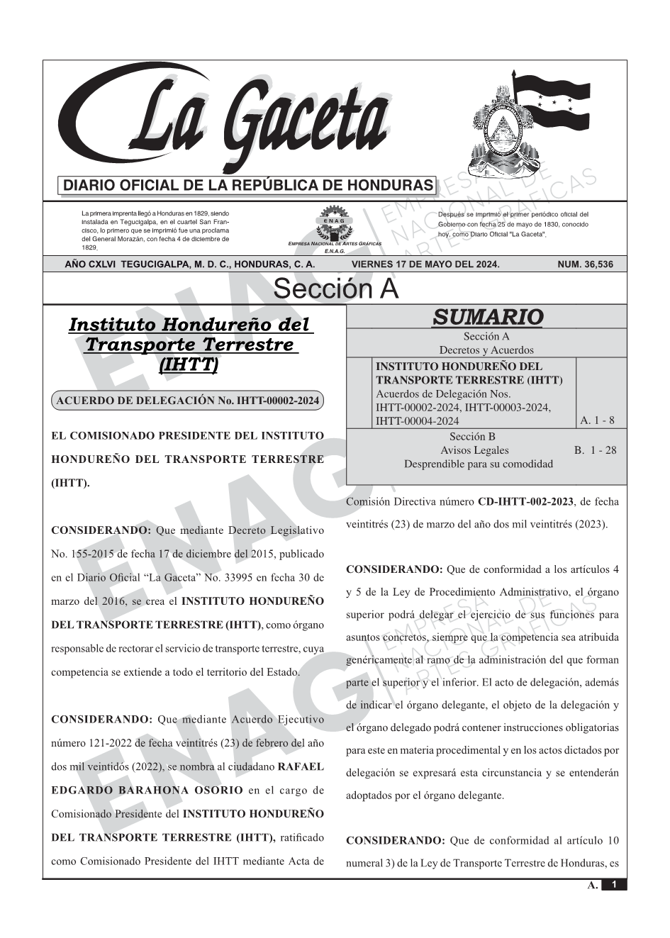INSTITUTO HONDUREÑO DEL TRANSPORTE TERRESTRE (IHTT)Acuerdos de Delegación Nos. IHTT-00002-2024, IHTT-00003-2024, IHTT-00004-2024