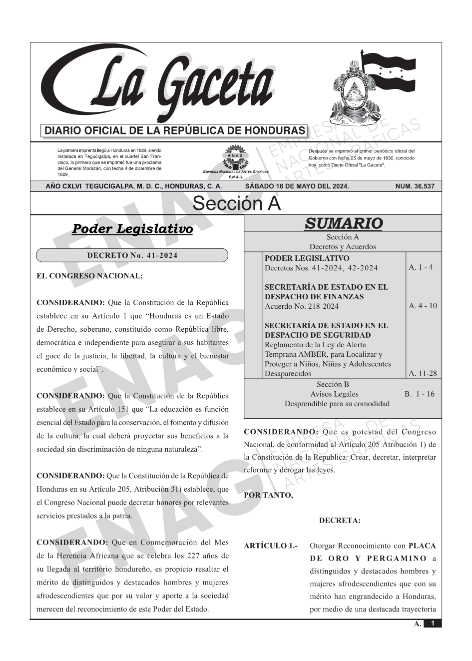 La Gaceta N° 36,537 del 18 de mayo de 2024