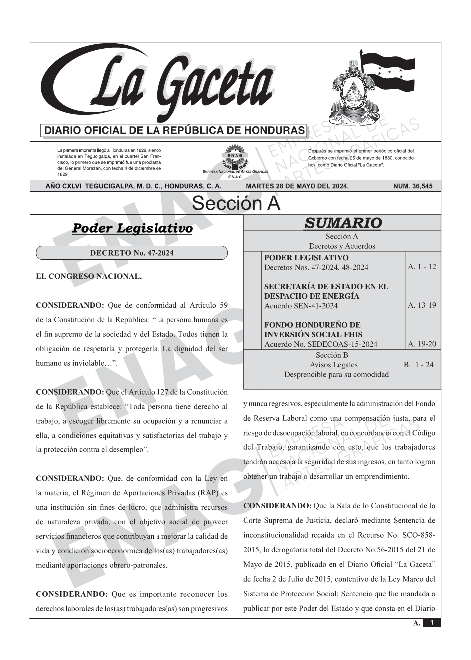 PODER LEGISLATIVODecretos Nos. 47-2024, 48-2024