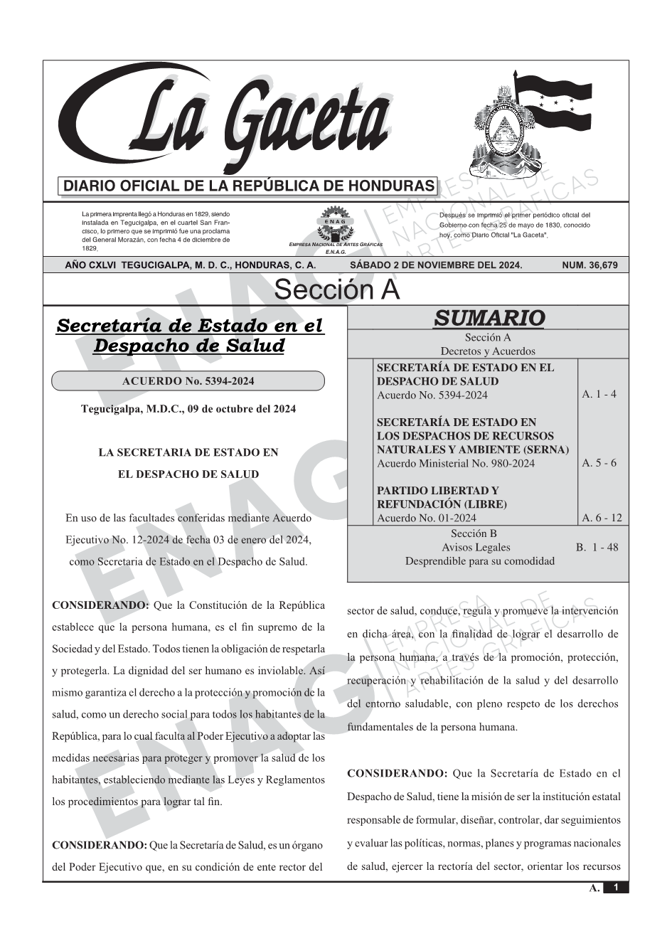 SECRETARÍA DE ESTADO EN EL DESPACHO DE SALUDAcuerdo No. 5394-2024