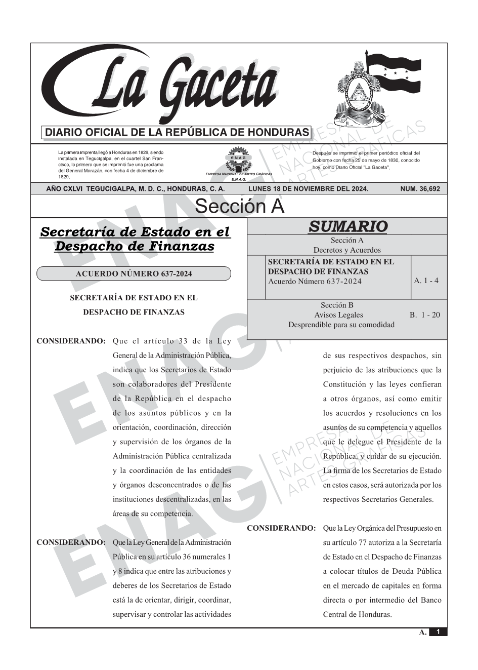 La Gaceta N° 36,692 del 18 de noviembre de 2024