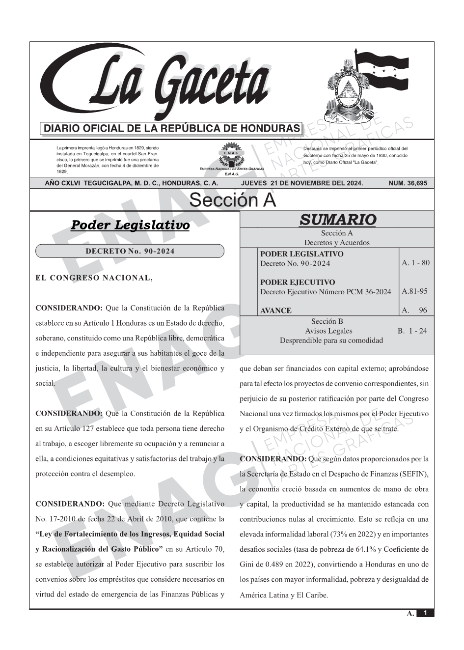 La Gaceta N° 36,695 del 21 de noviembre de 2024