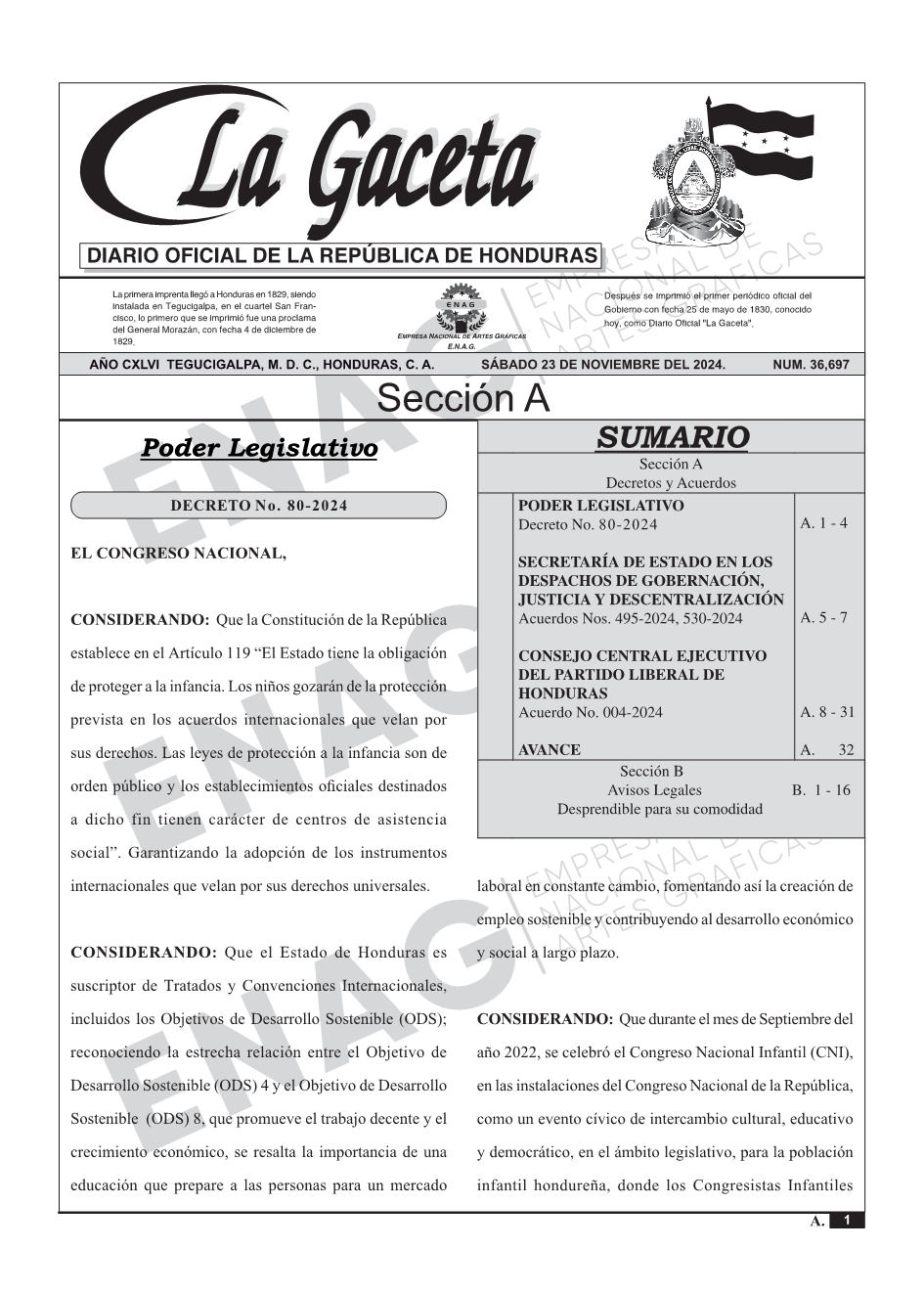 SECRETARÍA DE ESTADO EN LOS DESPACHOS DE GOBERNACIÓN, JUSTICIA Y DESCENTRALIZACIÓNAcuerdos Nos. 495-2024, 530-2024