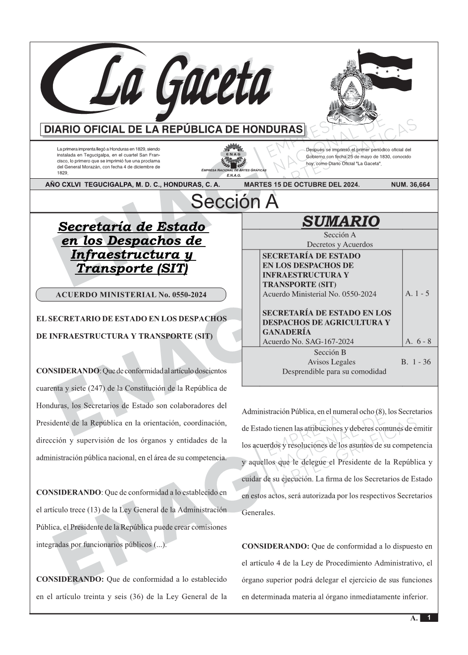 SECRETARÍA DE ESTADO EN LOS DESPACHOS DE AGRICULTURA Y GANADERÍAAcuerdo No. SAG-167-2024
