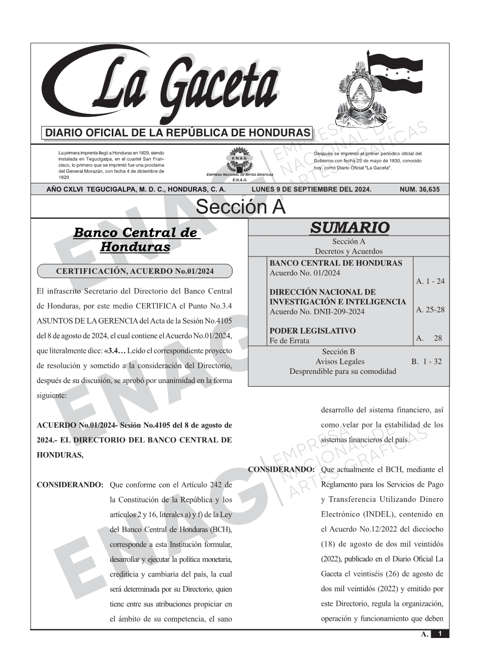 BANCO CENTRAL DE HONDURASAcuerdo No. 01/2024