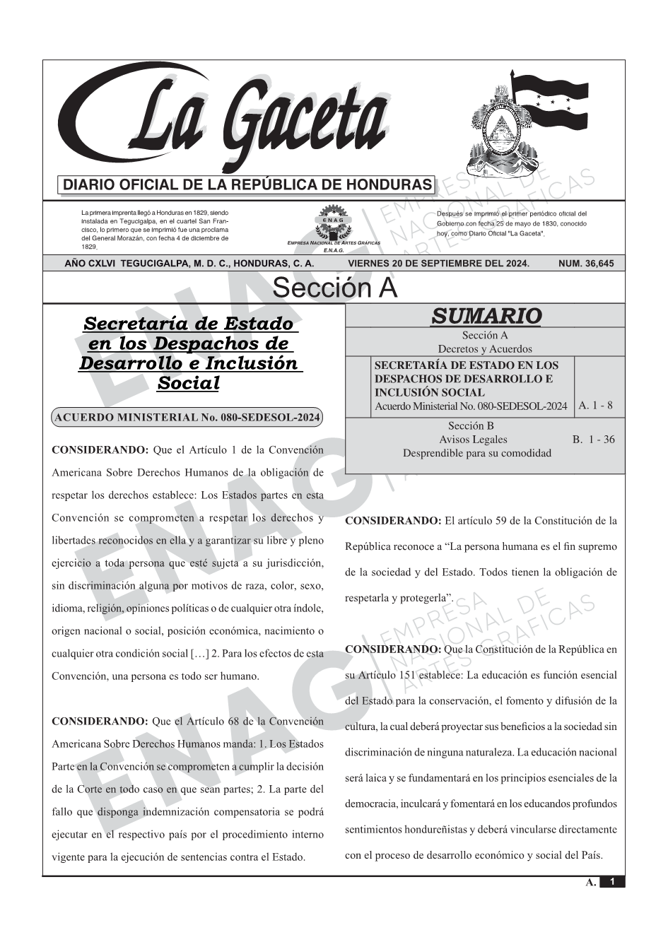 SECRETARÍA DE ESTADO EN LOS DESPACHOS DE DESARROLLO E INCLUSIÓN SOCIALAcuerdo Ministerial No. 080-SEDESOL-2024