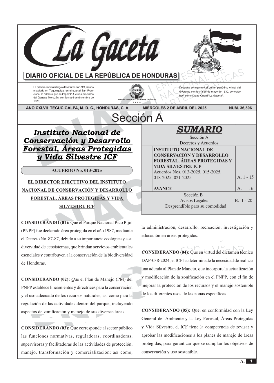 INSTITUTO NACIONAL DE CONSERVACIÓN Y DESARROLLO FORESTAL, ÁREAS PROTEGIDAS Y VIDA SILVESTRE ICFAcuerdos Nos. 013-2025, 015-2025, 018-2025, 021-2025