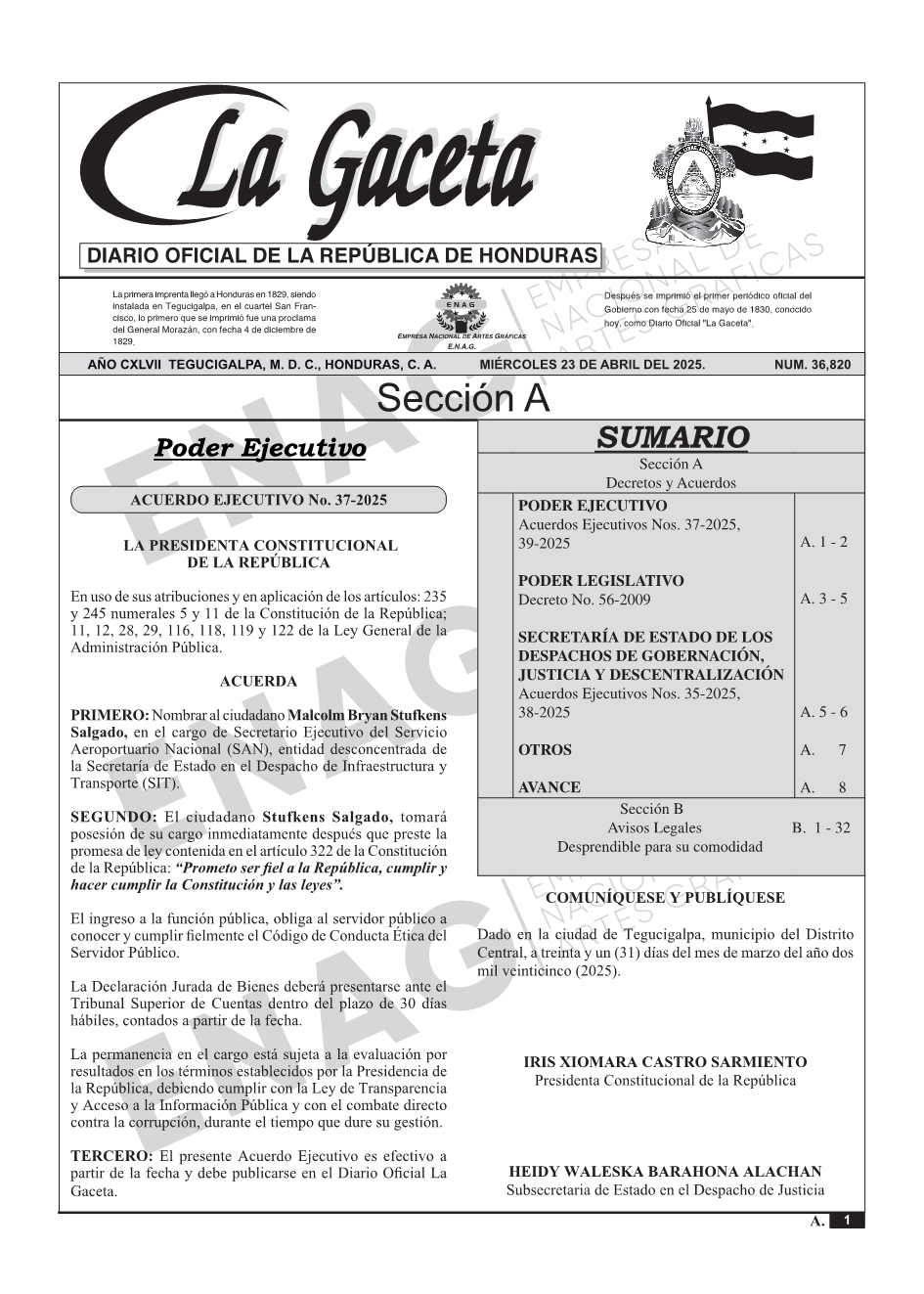 PODER EJECUTIVOAcuerdos Ejecutivos Nos. 37-2025, 39-2025