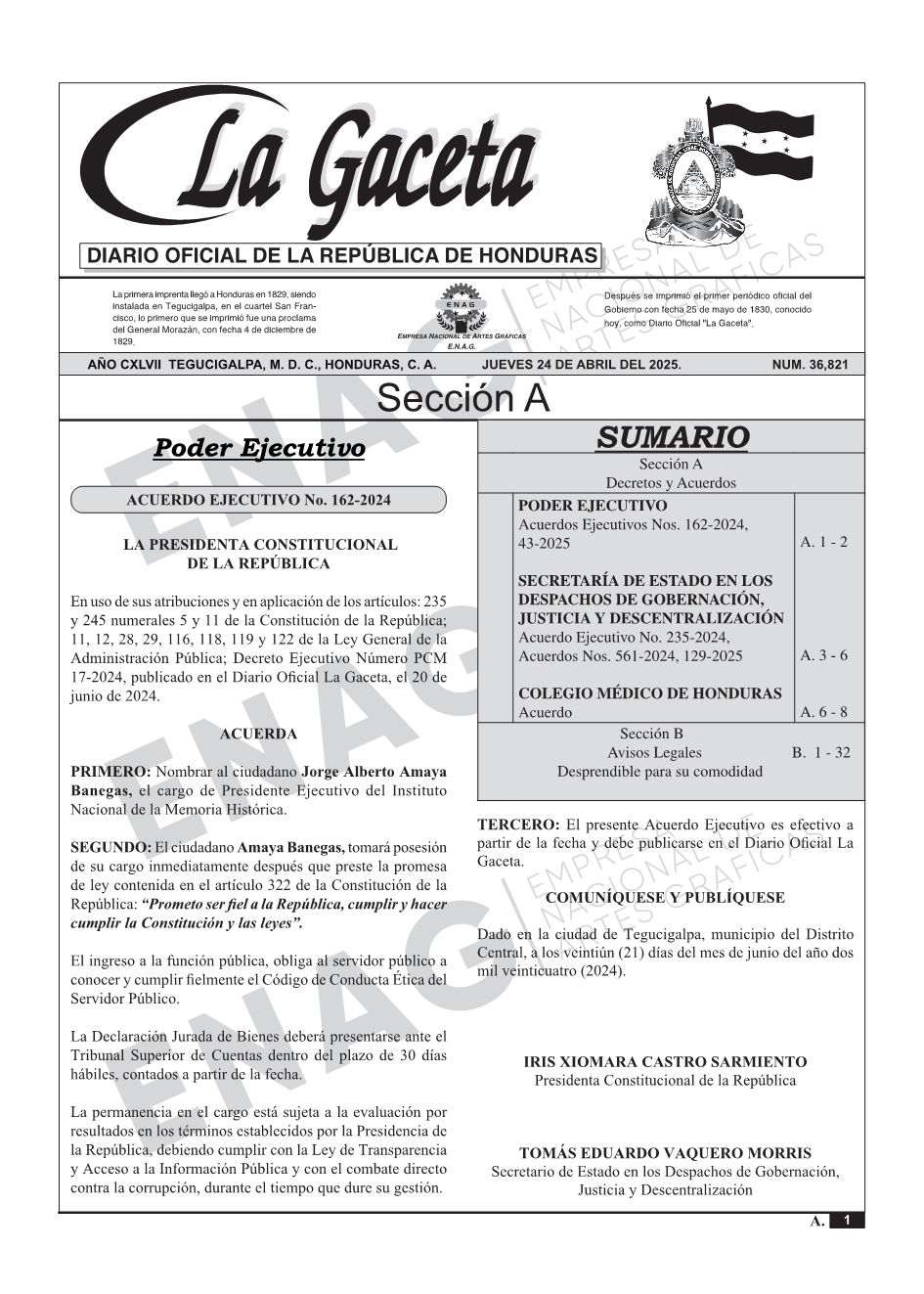 Acuerdos Ejecutivos Nos. 162-2024, 43-2025