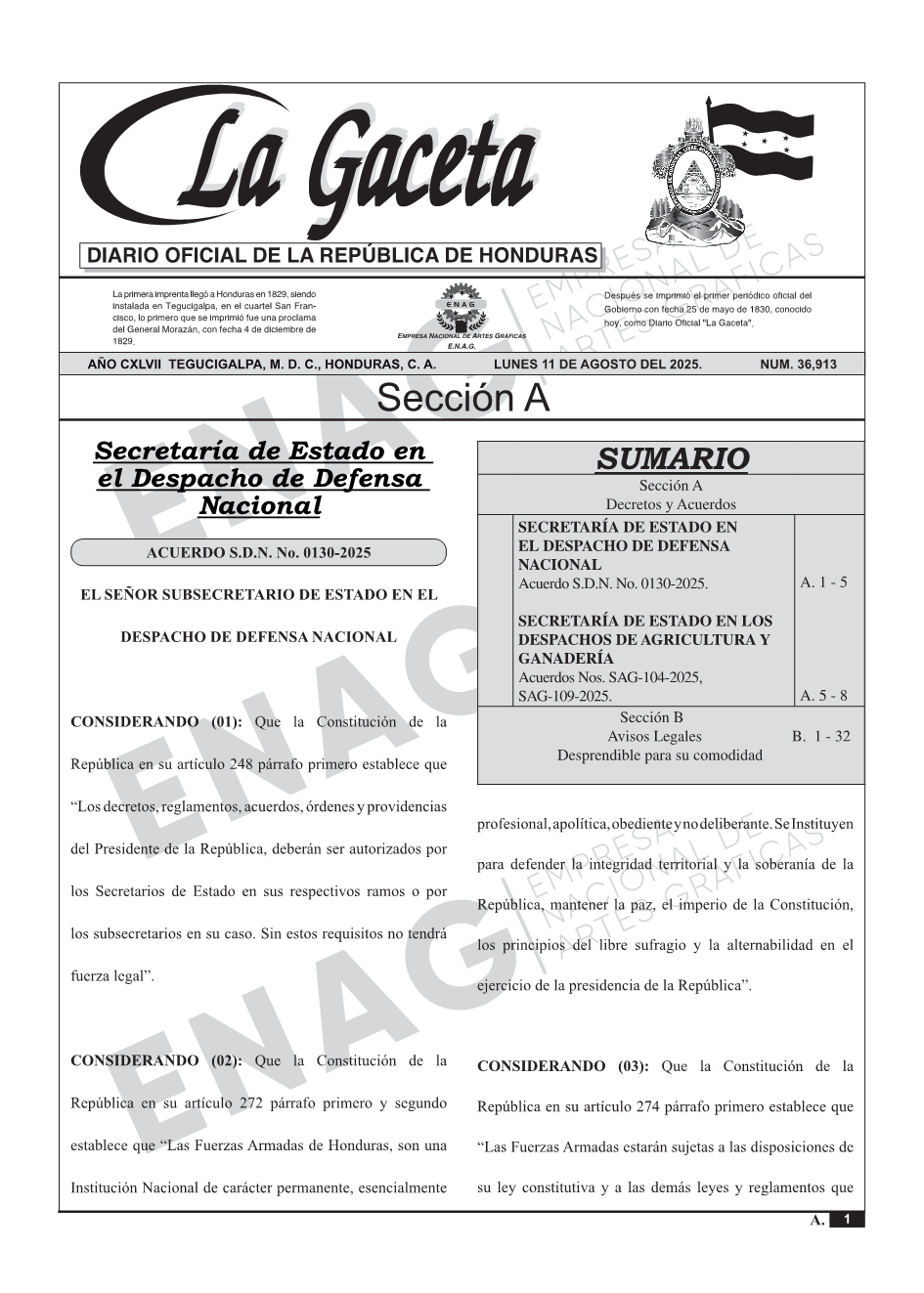 SECRETARÍA DE ESTADO EN EL DESPACHO DE DEFENSA NACIONALAcuerdo S.D.N. No. 0130-2025.