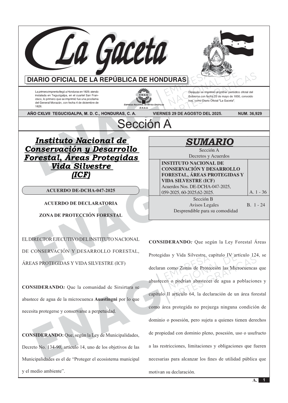INSTITUTO NACIONAL DE CONSERVACIÓN Y DESARROLLO FORESTAL, ÁREAS PROTEGIDAS Y VIDA SILVESTRE (ICF)Acuerdos Nos. DE-DCHA-047-2025, 059-2025, 60-2025,62-2025.