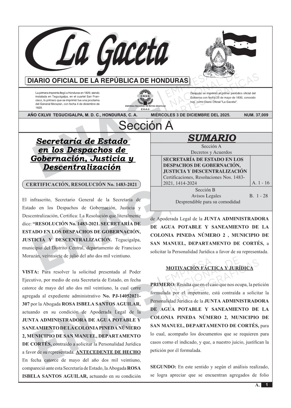SECRETARÍA DE ESTADO EN LOS DESPACHOS DE GOBERNACIÓN, JUSTICIA Y DESCENTRALIZACIÓNCertificaciones, Resoluciones Nos. 1483-2021, 1414-2024