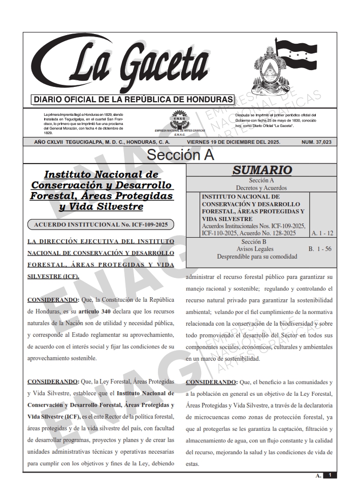 INSTITUTO NACIONAL DE CONSERVACIÓN Y DESARROLLO FORESTAL, ÁREAS PROTEGIDAS Y VIDA SILVESTREAcuerdos Institucionales Nos. ICF-109-2025, ICF-110-2025, Acuerdo No. 128-2025.