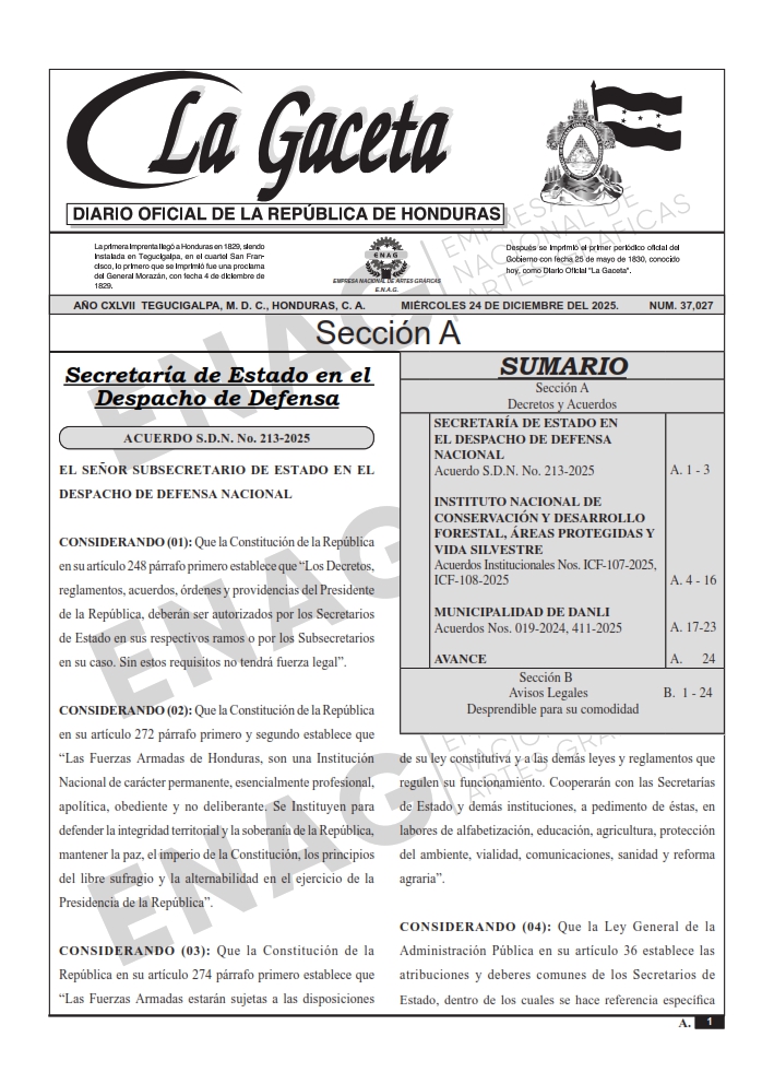 La Gaceta N° 37,027 del 24 de diciembre de 2025