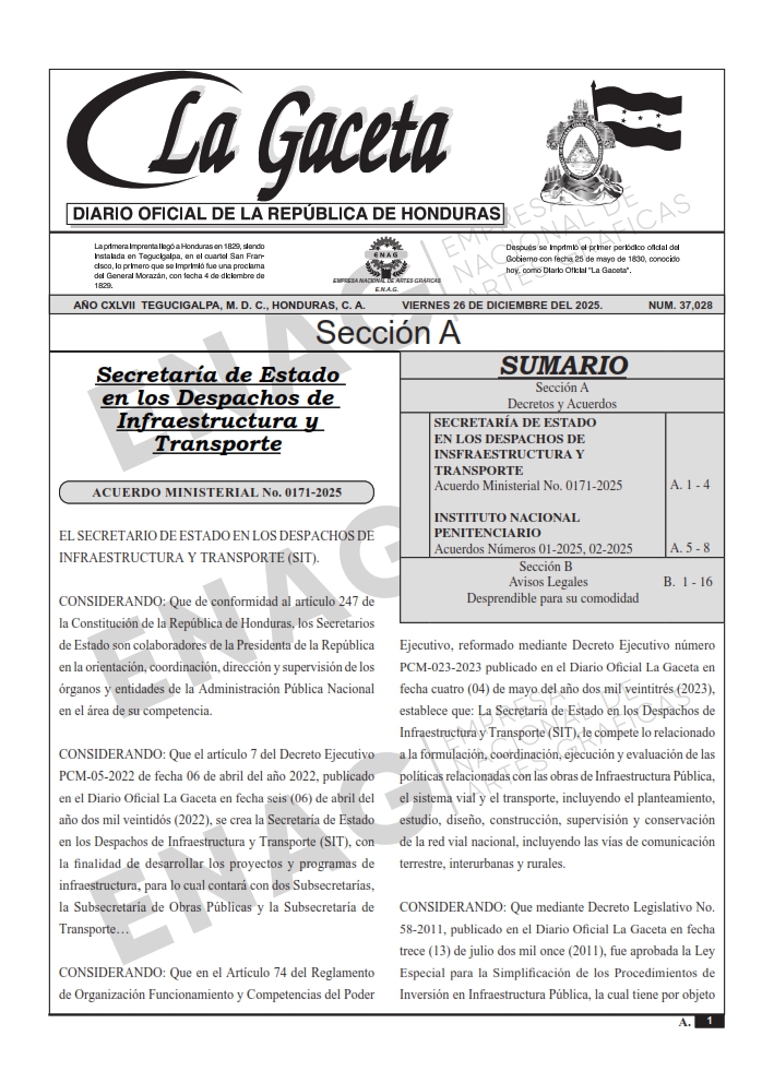 SECRETARÍA DE ESTADO EN LOS DESPACHOS DE INSFRAESTRUCTURA Y TRANSPORTEAcuerdo Ministerial No. 0171-2025