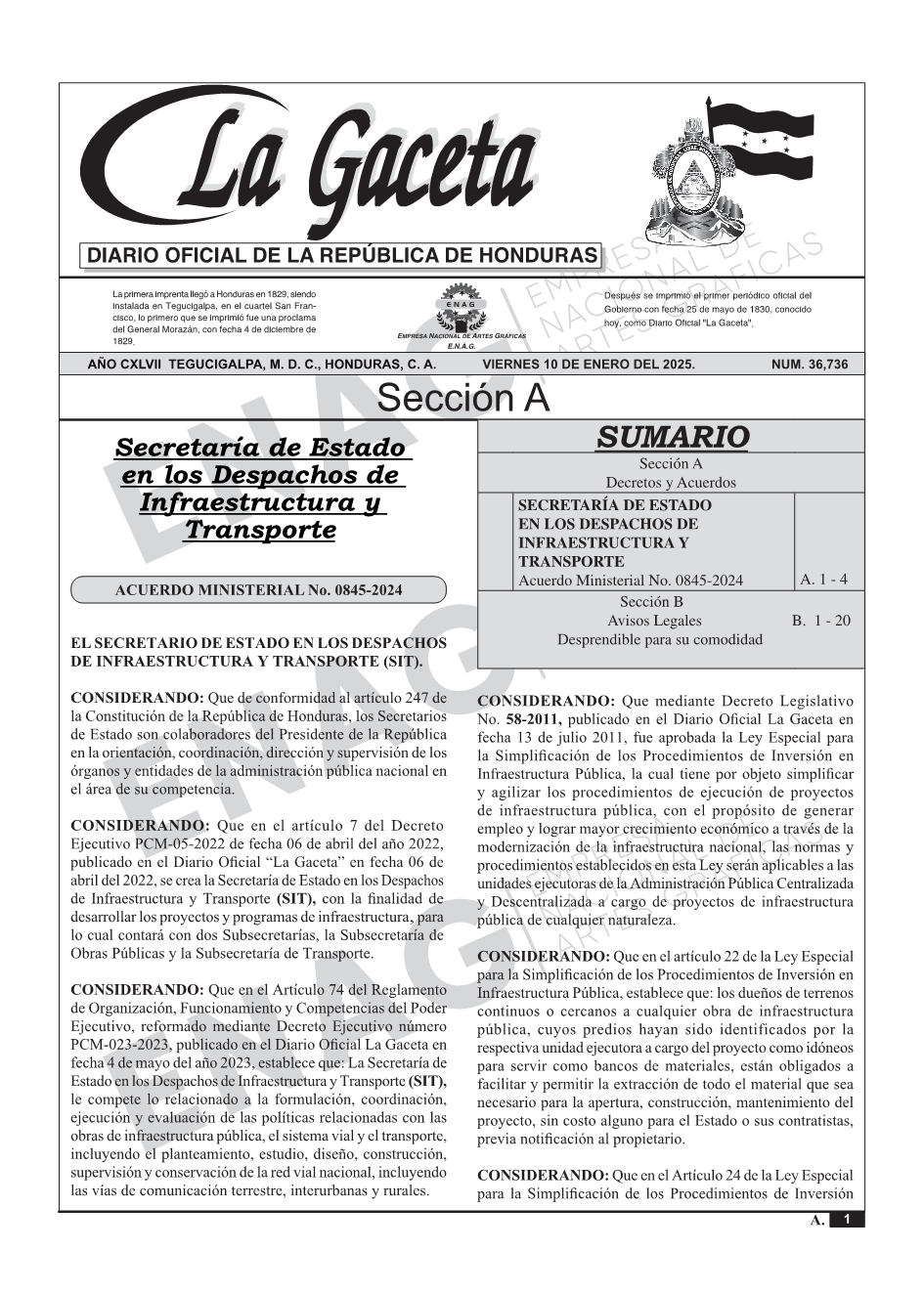 SECRETARÍA DE ESTADO EN LOS DESPACHOS DE INFRAESTRUCTURA Y TRANSPORTEAcuerdo Ministerial No. 0845-2024