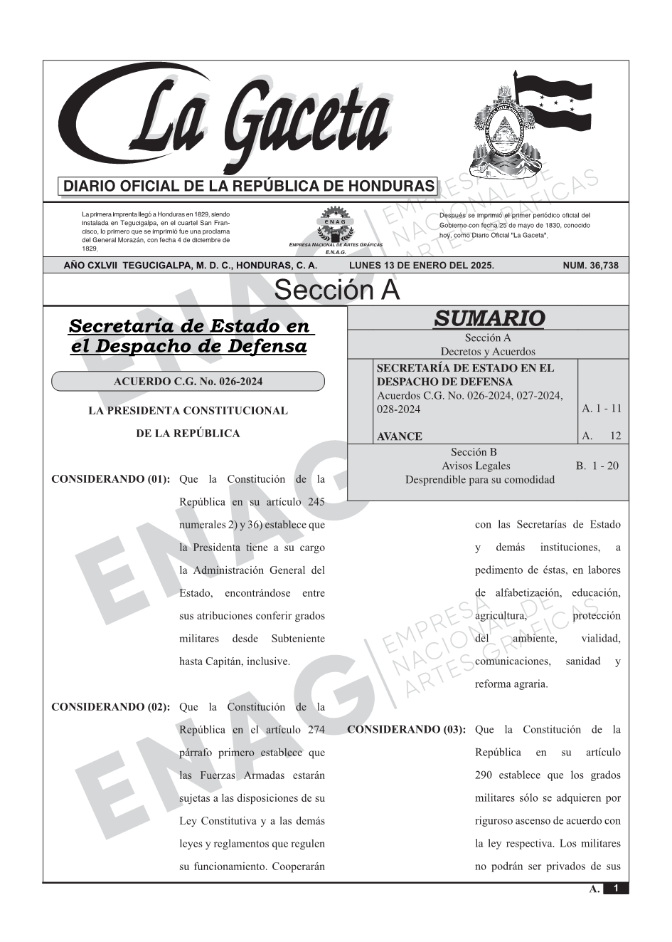 La Gaceta N° 36,738 del 13 de enero de 2025
