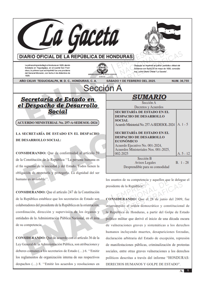 Acuerdo Ministerial No. 257-A-SEDESOL-2024