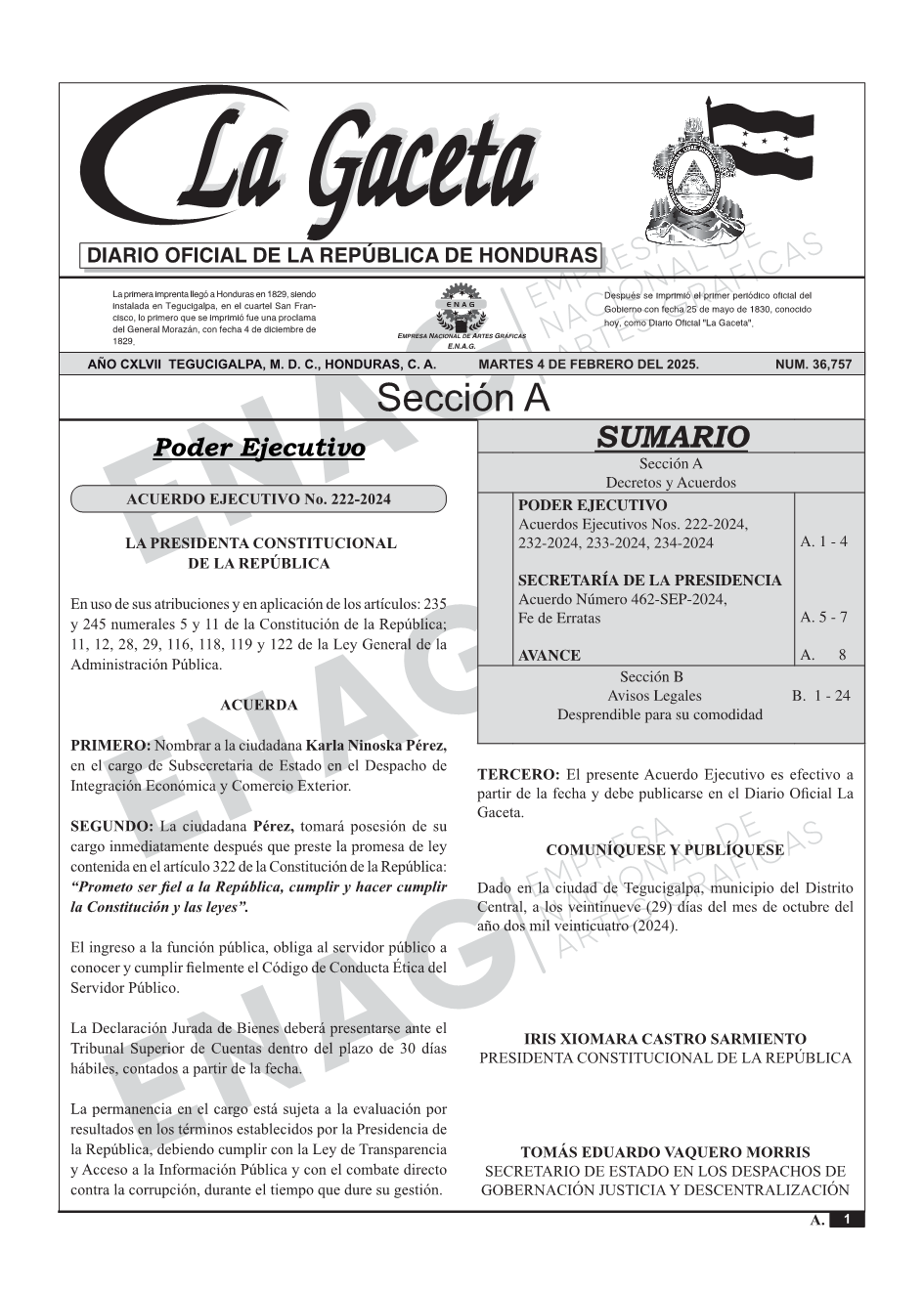 PODER EJECUTIVOAcuerdos Ejecutivos Nos. 222-2024, 232-2024, 233-2024, 234-2024