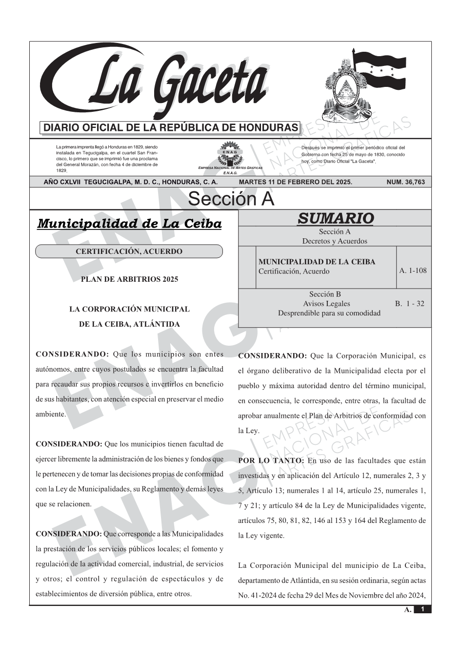 La Gaceta N° 36,763 del 11 de febrero de 2025