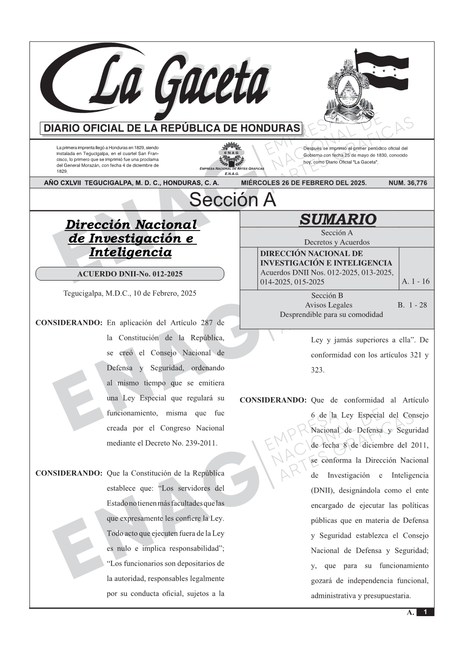 DIRECCIÓN NACIONAL DE INVESTIGACIÓN E INTELIGENCIAAcuerdos DNII Nos. 012-2025, 013-2025, 014-2025, 015-2025