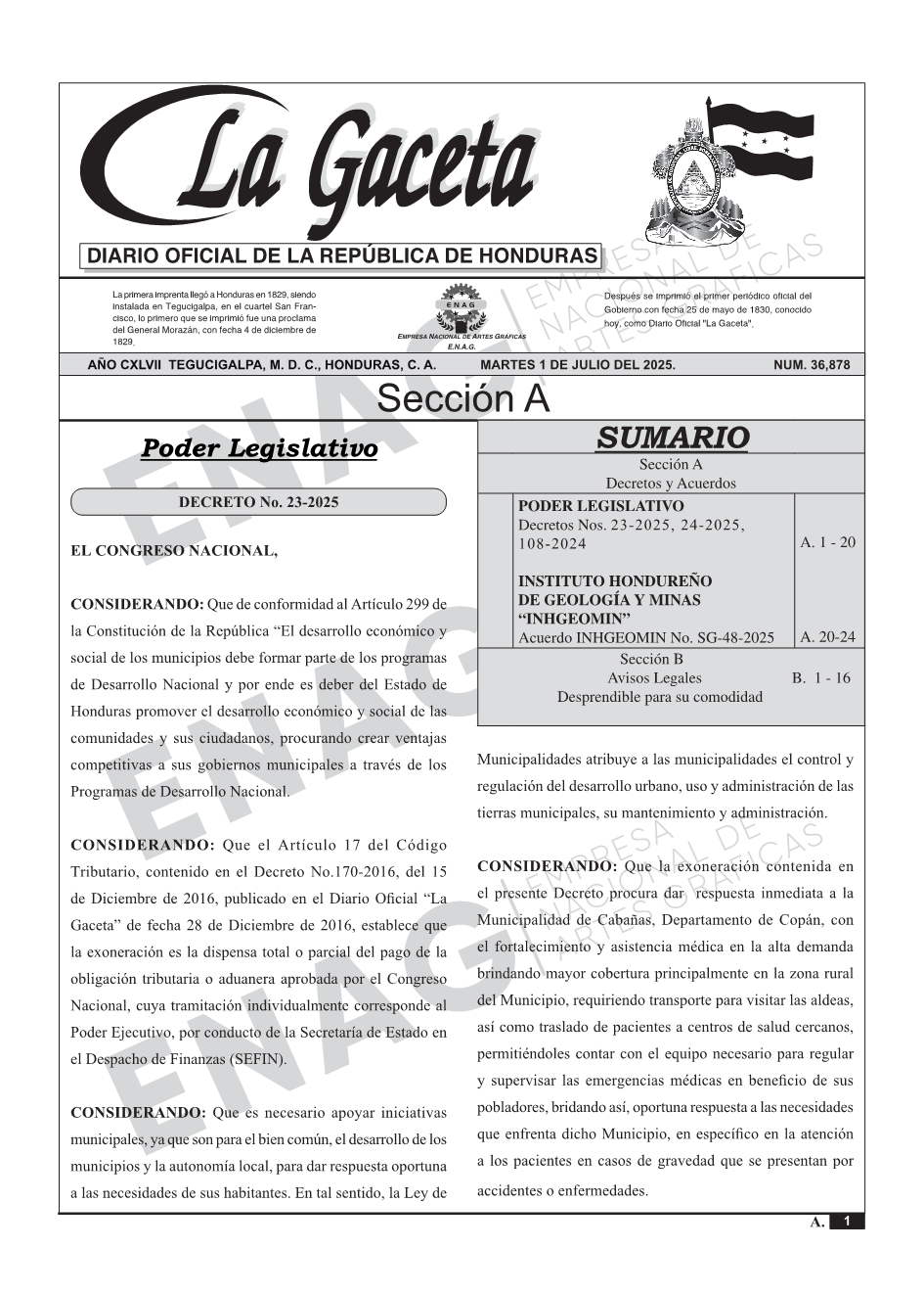 PODER LEGISLATIVODecretos Nos. 23-2025, 24-2025, 108-2024