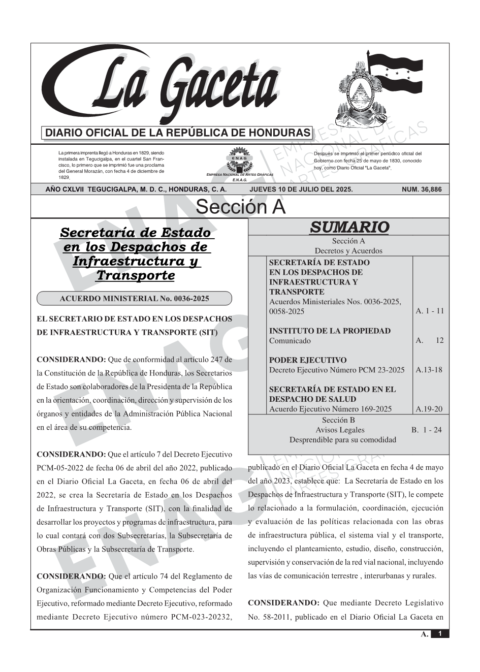 La Gaceta N° 36,886 del 10 de julio de 2025