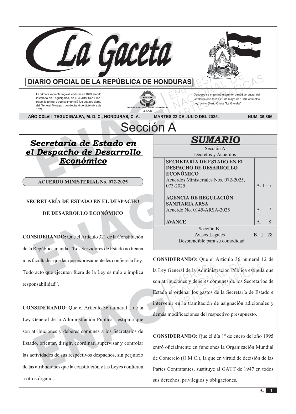 SECRETARÍA DE ESTADO EN EL DESPACHO DE DESARROLLO ECONÓMICOAcuerdos Ministeriales Nos. 072-2025, 073-2025