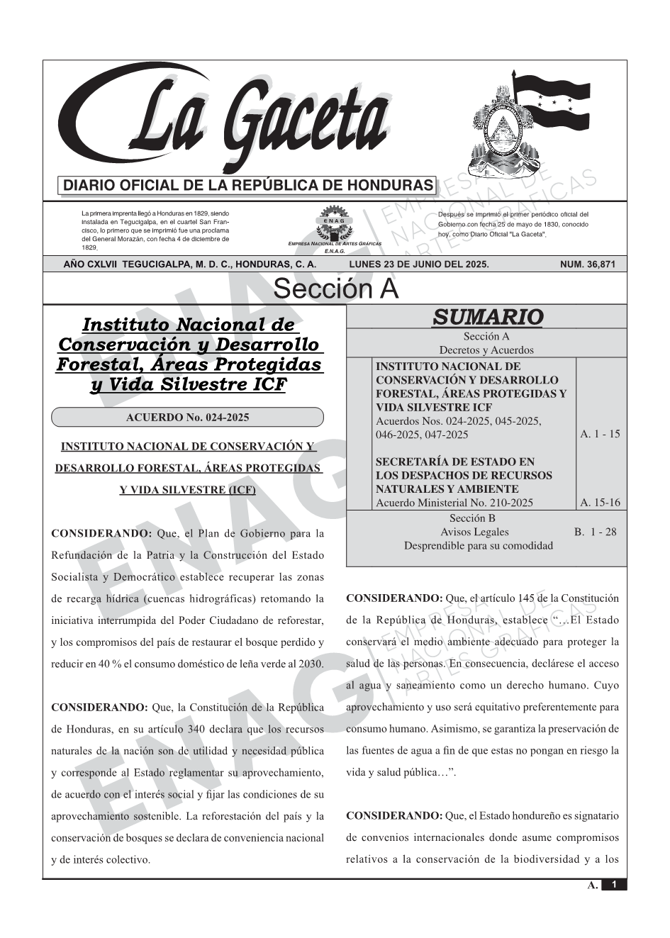 INSTITUTO NACIONAL DE CONSERVACIÓN Y DESARROLLO FORESTAL, ÁREAS PROTEGIDAS Y VIDA SILVESTRE ICF