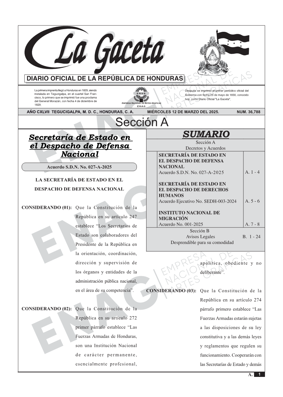 INSTITUTO NACIONAL DE MIGRACIÓNAcuerdo No. 001-2025