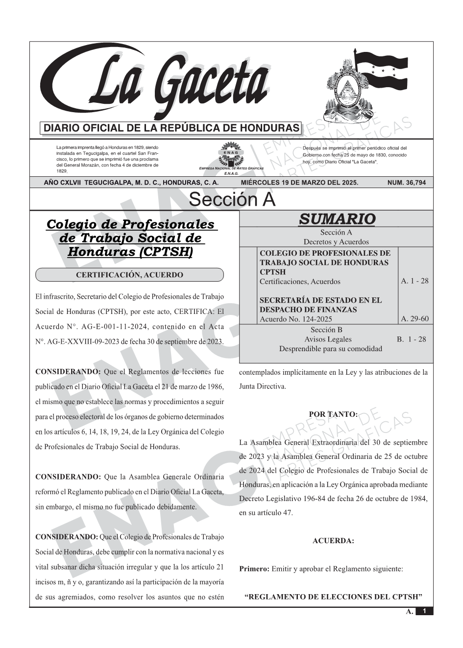 COLEGIO DE PROFESIONALES DE TRABAJO SOCIAL DE HONDURAS CPTSHCertificaciones, Acuerdos