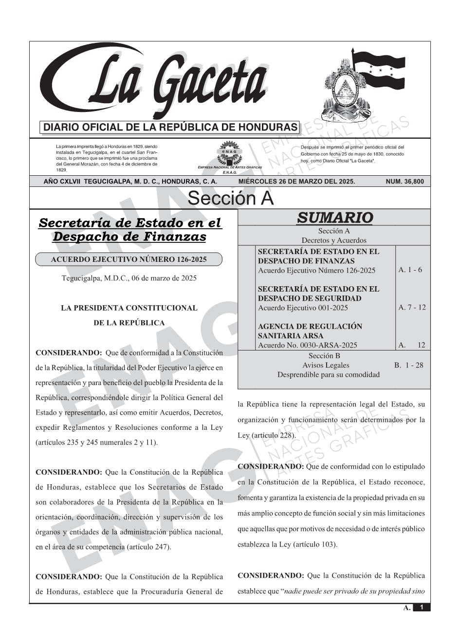 SECRETARÍA DE ESTADO EN EL DESPACHO DE FINANZASAcuerdo Ejecutivo Número 126-2025