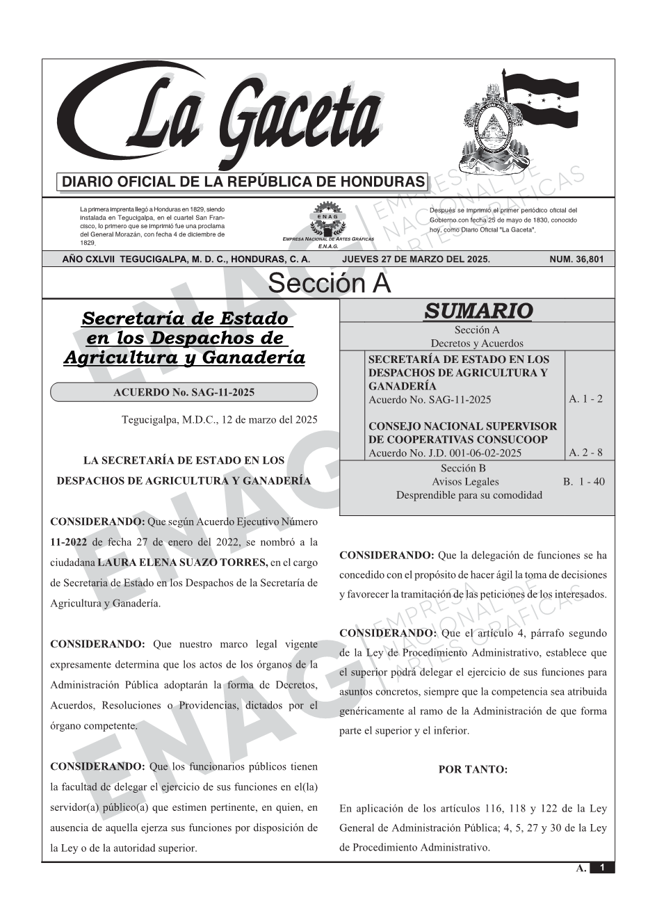 SECRETARÍA DE ESTADO EN LOS DESPACHOS DE AGRICULTURA Y GANADERÍAAcuerdo No. SAG-11-2025