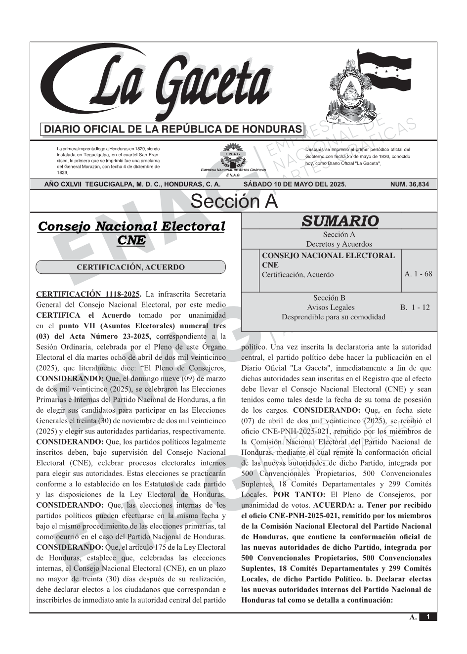 La Gaceta N° 36,834 del 10 de mayo de 2025