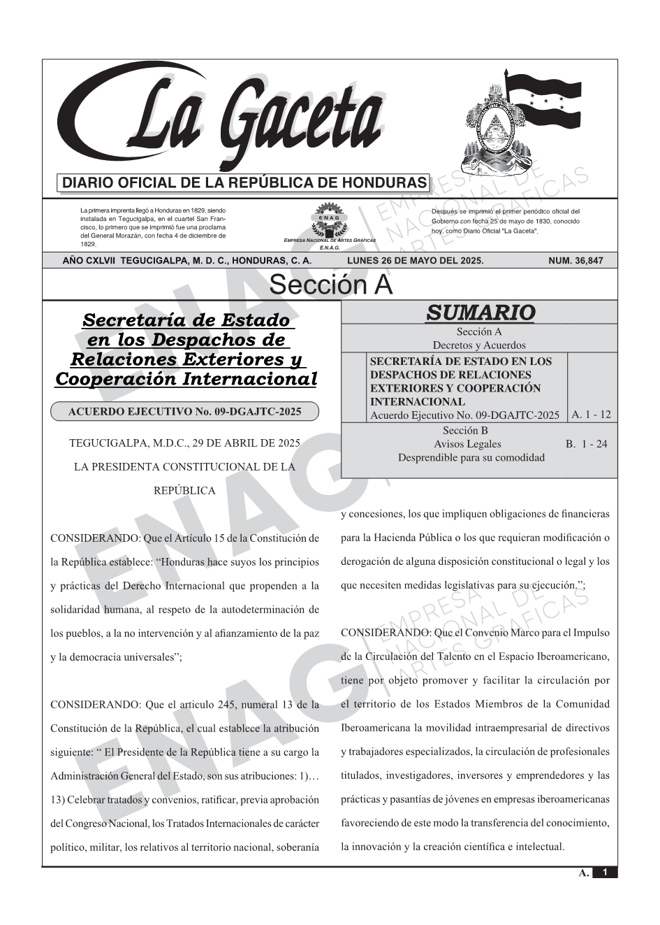 SECRETARÍA DE ESTADO EN LOS DESPACHOS DE RELACIONES EXTERIORES Y COOPERACIÓN INTERNACIONALAcuerdo Ejecutivo No. 09-DGAJTC-2025
