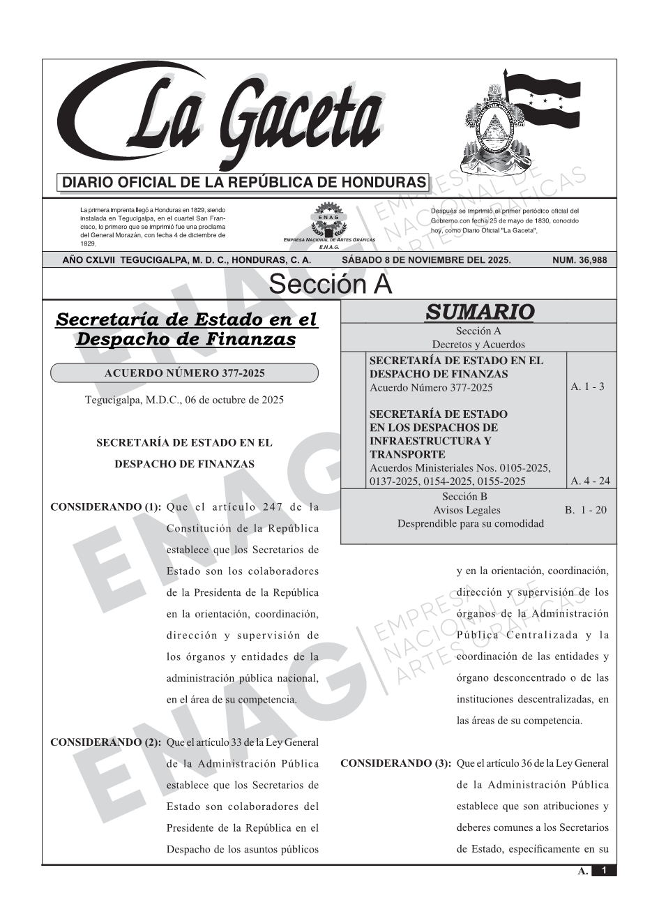 SECRETARÍA DE ESTADO EN EL DESPACHO DE FINANZASAcuerdo Número 377-2025