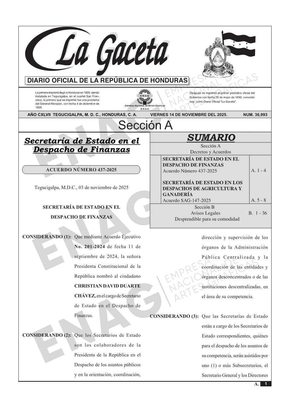 SECRETARÍA DE ESTADO EN EL DESPACHO DE FINANZASAcuerdo Número 437-2025