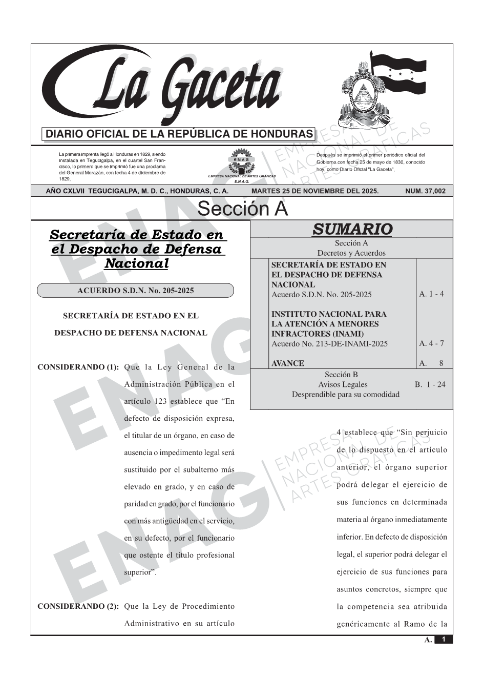 SECRETARÍA DE ESTADO EN EL DESPACHO DE DEFENSA NACIONALAcuerdo S.D.N. No. 205-2025