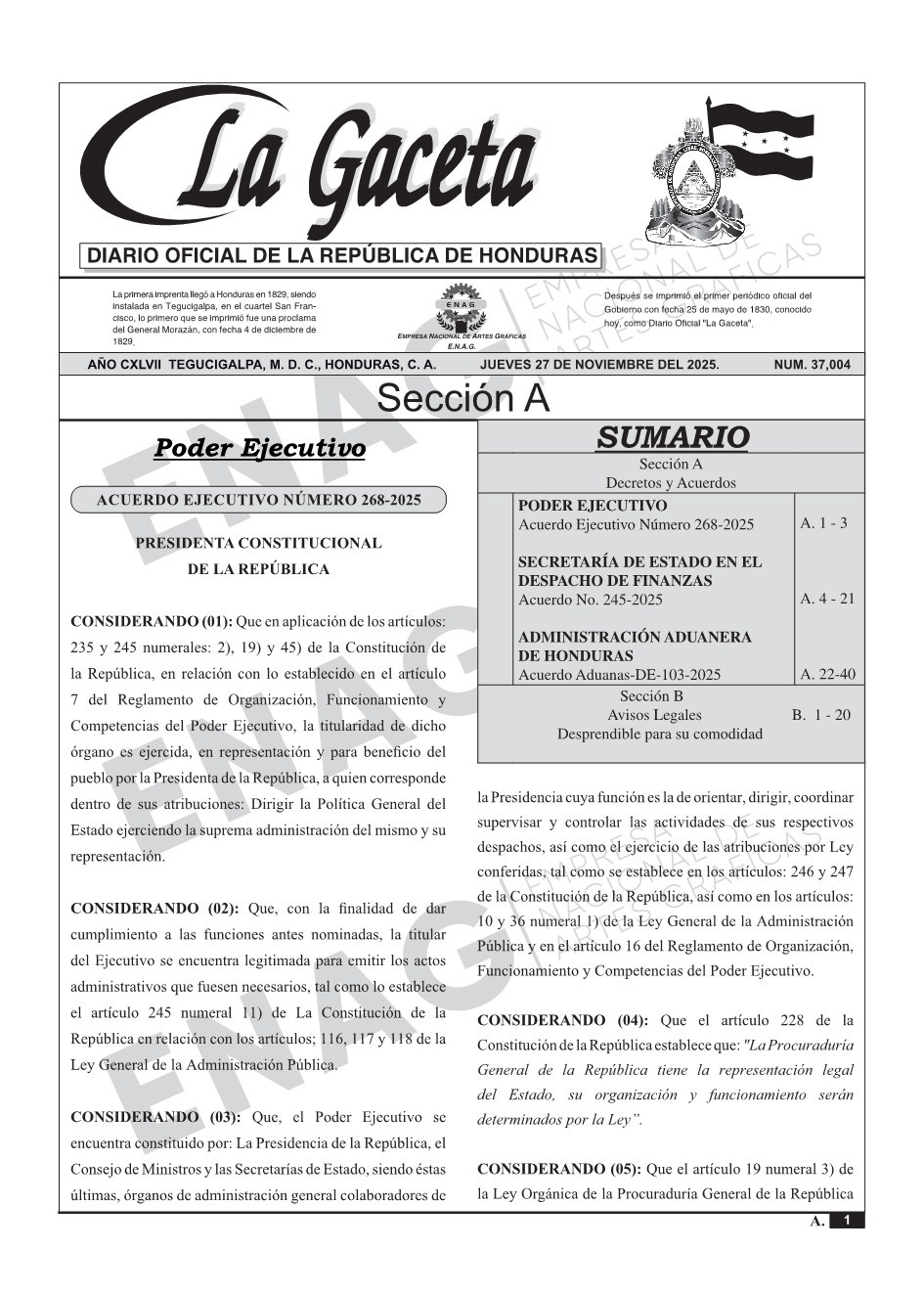 PODER EJECUTIVOAcuerdo Ejecutivo Número 268-2025