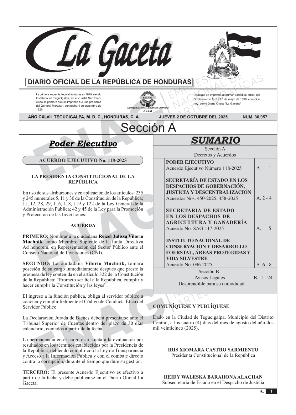 La Gaceta N° 36,957 del 02 de octubre de 2025