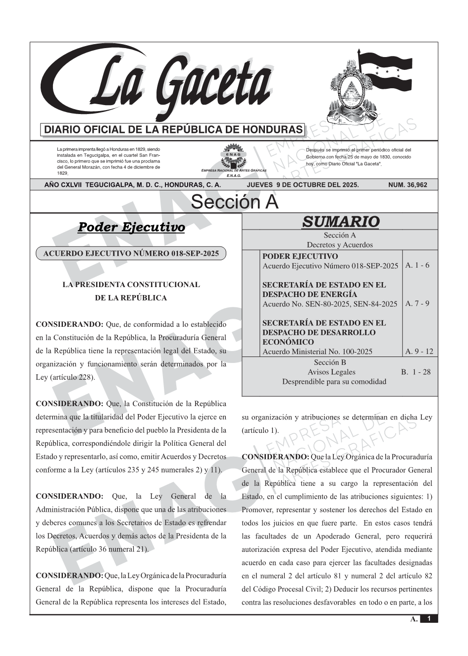 PODER EJECUTIVOAcuerdo Ejecutivo Número 018-SEP-2025