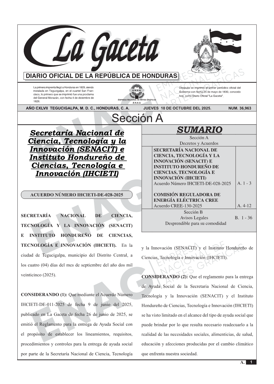 SECRETARÍA NACIONAL DE CIENCIA, TECNOLOGÍA Y LA INNOVACIÓN (SENACIT) E INSTITUTO HONDUREÑO DE CIENCIAS, TECNOLOGÍA E INNOVACIÓN (IHCIETI)