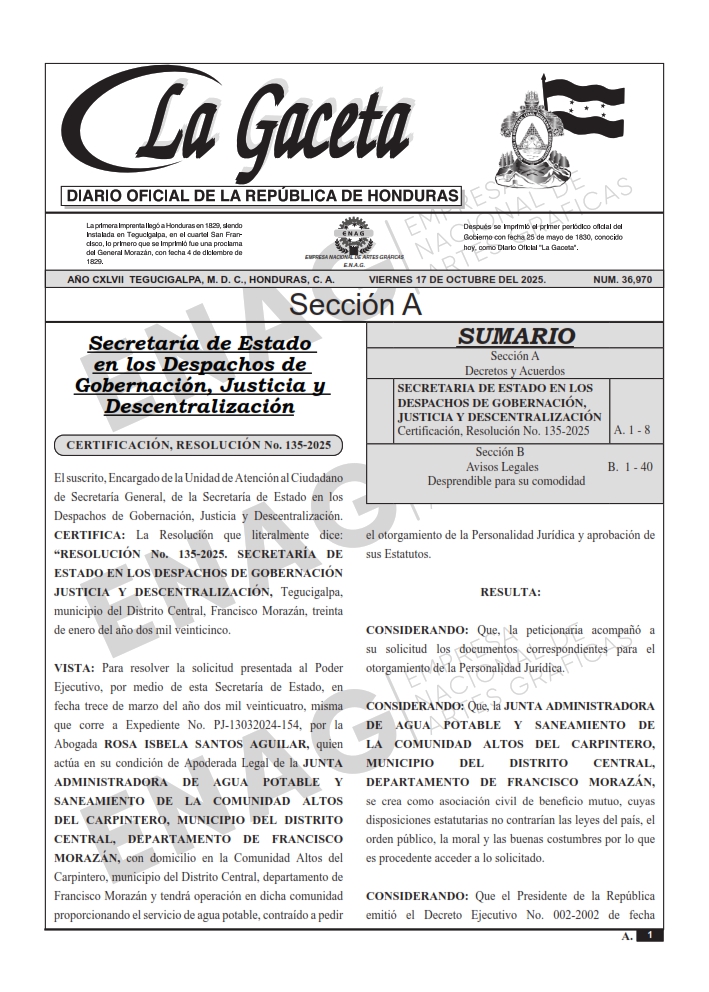 SECRETARIA DE ESTADO EN LOS DESPACHOS DE GOBERNACIÓN, JUSTICIA Y DESCENTRALIZACIÓNCertificación, Resolución No. 135-2025
