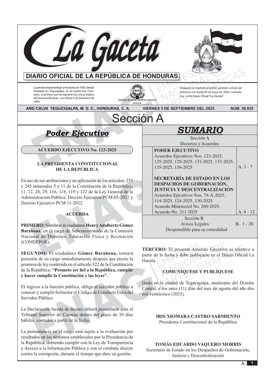 La Gaceta N° 36,935 del 05 de septiembre de 2025