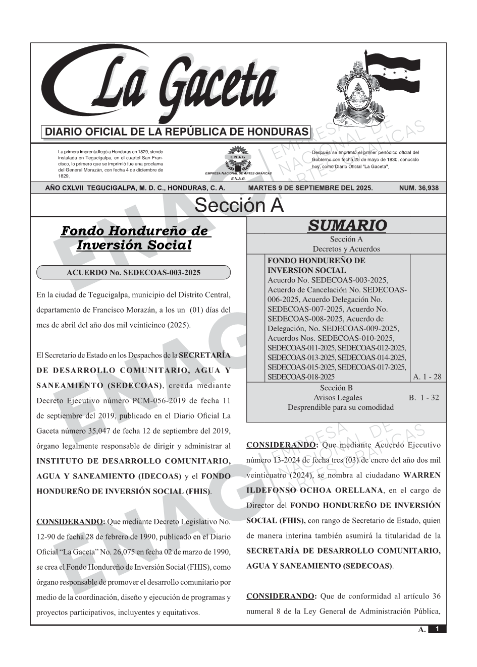 Acuerdo No. SEDECOAS-003-2025, Acuerdo de Cancelación No. SEDECOAS- 006-2025,