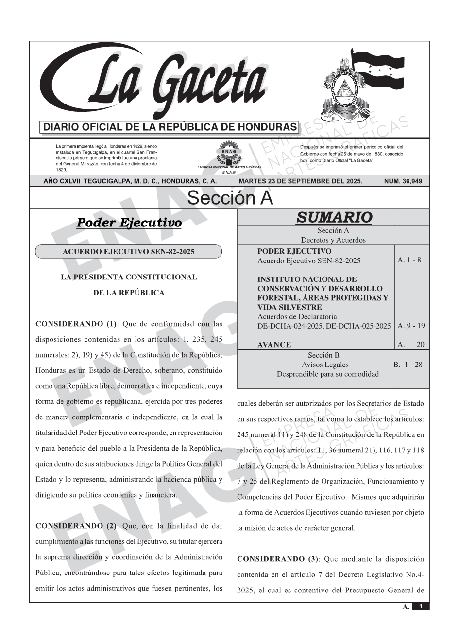 PODER EJECUTIVOAcuerdo Ejecutivo SEN-82-2025