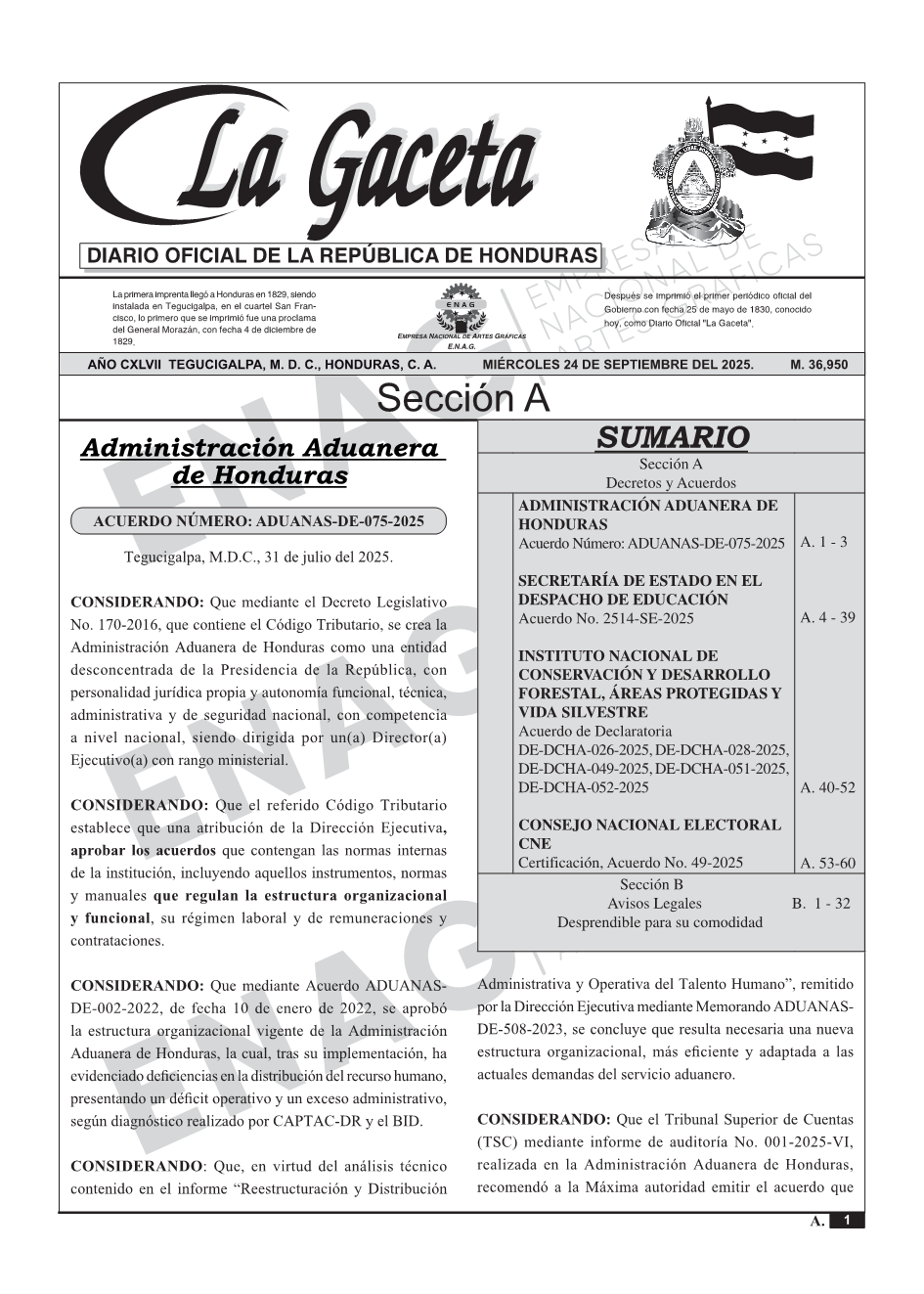 La Gaceta N° 36,950 del 24 de septiembre de 2025